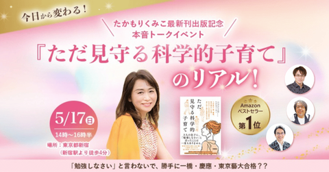 5/17(日)出版記念トークイベント!「ただ見守る科学的子育て」のリアル!